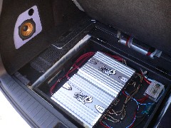 純正より音が良く、純正デザインをあまり崩さないのが要望でした。システムアップも考え、フロントスピーカーはTBMを使用しました。サブウーファーはカーゴスペースの横に取り付けしました。グリルを付ければ荷物から守ることが出来ます。アンプ類はスペアタイヤの上に作りました。もちろんアンプラックを持ち上げればスペアタイヤは取り外し可能です。