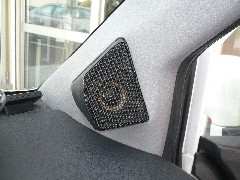 究極のシステムです。メインシステムはソニックデザインのデジコア808です。わずかA4サイズとコンパクトサイズなのに、メディアプレーヤーと8チャンネルのデジタルプロセッサー・8チャンネル分のパワーアンプが内臓されていて、音は今までにない高音質を再生します。コンパクトなので、トランクの横に取り付けカバーで隠されています。コンパクトフラッシュの窓だけ見えます。コントローラーはオーバーヘットに取り付けいたしました。CDとDVDはアルパインで再生、オーディオテクニカのデジタルケーブルでデジコアに入力していますので、これまた高音質です。今回の驚きはソニックデザインの新型エンクロージャー採用のUNIT52です。なんとこんな小口径スピーカーで200Hzまできっちり再生いたします。ほとんどの周波数がダッシュ上で再生される為、あまり車内環境に左右されず、今までに無い音を再生いたします。このシステムには感動です。お客様もこのシステムには満足のようです。