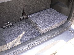 | 新型エスクードに取付です。トランクが小さい為、サブウーファーなどで潰さないで高音質を再生したいとのこと、ソニックデザインのユニット100を使用しました。10センチとは思えないほど高音質で、驚くほど低音域まで再生するので、フロント2ウェイでもお客様は納得していただきました。アンプはお持ちのマッキントッシュを使用しました。カバーをすれば荷物も載せられますし、下側の収納ボックスも使用可能になっています。 |