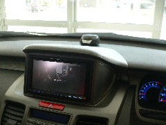 | ナビゲーション内臓の5.1システムです。お手軽でなかなか良い感じに鳴っています。ヘットレストモニターも付いているので、後部座席の人も楽しめます。バックカメラは純正の様に半分隠れています。地デジも付いているのですが、これを一度観たらアナログ放送は観れません。こんなに違うものですね! |