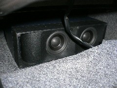 お持ちのヘットユニットを使い音質アップのためにスピーカーを交換いたしました。フロントスピーカーは低価格でコストパフォーマンスに優れているソニックデザインのスピーカーを取付いたしました。ボックススピーカーのため、防振などが必要なくスピーカーの性能を発揮しています。またシート下にはサブウーファー用のアンプとサブウーファーを左右に取付してあります。ワイドレンジで質の高い音質を再生しています。
