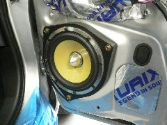 | 新車の購入を気にオーディオをシステムでご購入頂きました。DEH-970を使い、キッカーのアンプでフォーカルのスピーカーをマルチ再生いたしました。ツィーターをAピラーに製作し、ドアはインナーバッフルを製作し、スピーカーの性能を発揮させる為に、デッドニング致しました。アンプはシート下に取り付けした為、トランクスペースを犠牲にすることなく取り付けされています。外部アンプを使っているため、ハワー感もあり、フォーカルらしい聴きやすく綺麗な音を奏でています。 |