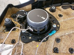 X3(E83)にはソニックデザインから車種専用モデルの設定がありませんが、当店では違う車種のソニックプラスを使い取り付けいたしました。内張りの内側を多少加工が必要になりますが、無事取り付けいたしました。シート下の純正サブウーファーともバランスがよく、クリアで活き活きとした音質に変わりました。