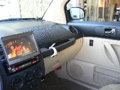 ビートルは1DINしか入らない為、ハードディスクの本体はグローブボックス下に取り付けしました。スピーカーには価格も安く高音質なトレードインボックスを取り付けしました。ドアの加工も少なく、見た目もノーマルなのに、高音質を奏でます。カーゴスペースにはトレードインボックスのサブウーファーと、アンプがありますが共に小型なので、なるべくカーゴスペースを潰さずにいます。