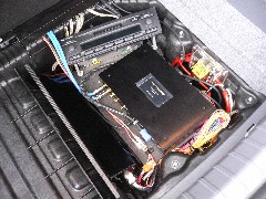 高音質にipodを聴くためにAXM-P01とDEQ-P01を使い、ソニックデザインの2wayを再生いたします。トランクの実用性を考え、すべてのシステムをトランク下の収納スペースに収めました。まだエージング中ですが、ボックススピーカーの奏でる音と、音楽を余すとこなく再生する音にご満悦頂きました。