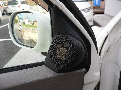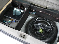 デジコア808を使い、フロントスピーカーには同社のUNIT-N52Nをミラー裏に取付けし、ドアには新型スピーカーUNIT-N70Nをいれました。UNIT-70Nは77ミリと小口径なのに、凄い低音再生をいたします。ドアの加工が少なく見た目はノーマルです。サブウーファーの替わりにUNIT-N100Nを使いました。10センチですけどハイファイで再生するには、十分のスピーカーです。トランクルームは底上げしてデジコアと下側にR-70を収納しています。もちろんスペアタイアも脱着できます。