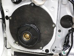 純正ヘットユニットが外せない為そのままで、ソニックデザインのデジコア808を核にしたシステムです。本体はグローブボックス下に吊り下げてあります。スピーカーは大掛かりな加工をしなくても、高音質を奏でるソニックデザインの新型スピーカーUNIT-N70Nを使いました。小口径なのに今までにない、低音再生には圧巻です。