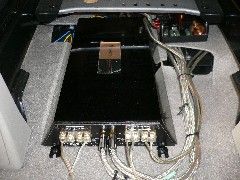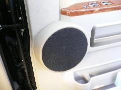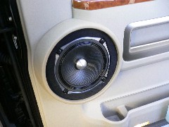 | 以前からお使いのフロントスピーカーをアウターバッフルに致しました。ドア内から外に出てきたスピーカーは確実抜けが良くなり、今まで以上に情報量がまし、クリアな音質になりました。アウターバッフルは画像ではわかりずらいですが、リスターに向けて角度が付いています。運転席下に今までチューンナップウーファーが付いていたのですが、おしりへの震動が凄く、なおかつこもっていた低音を再生していた為、今回ソニックデザインのウーファーに変更しました。助手席下にパワーアンプを取付けし、フロントスピーカーとサブウーファーを鳴らしています。パワーアンプの追加で、フロントスピーカーのパワー感はかなり上がりました。 |