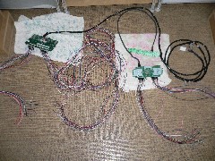 | 通常は純正のカーウィングスが取付されていて、エアコンやオーディオなどの操作パネルが一体の為、社外のオーディオは取付することができませんが、当店では操作パネルなどを分解し、社外のナビを取付いたしました。フィルム配線などを延長するという作業で凄い量の配線になりました。エアコンの操作スイッチはオーバヘッドのマップランプ位置に取付いたしました。 |