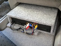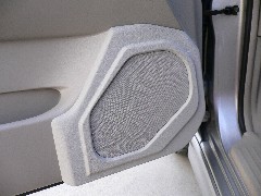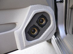 バージョンアップしたデジコア808iを使い、フロント2ウェイのシステムになっています。ミニバンで収納スペースを潰さないようデジコアと安定化電源はフロントシート下にインストールしてあります。デジコアはコンパントなのでイス下にも取付できます。そのお陰でスピーカーケーブルなども短くすみます。これって音質には非常に効果がありますよね。スピーカーはワイドレンジに再生できるUNIT-N55RをAピラーに取付、このスピーカーで300Hzくらいまで再生しています。もちろんクリアで繊細な音質をダッシュ上で展開しています。ドアウーファーはサブウーファーを付けない為、しっかりした低域までも再生させるためにSD-N77Rをエンクロージャーをオリジナルで製作し取付いたしました。77ミリとは思えない量感・低域再生をしています。