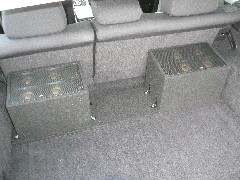 | いつもお世話になっているレガシーですが、今回は大幅にシステムアップです。限定で発売されたSW-77Nをなんと4セットという仕様になっています。取り付けにはお客様の要望もあり脱着可能になっています。そしてフロントスピーカーはSD-77Nを片側2本でオリジナルエンクロージャーにて取付いたしました。まずフロントスピーカーが低域までしっかり再生され中低域の厚みが素晴らし音質になっています。サブウーファーは小口径のためレスポンスが速く、低域までの解像度がはっきりしています。小口径ですけど流石に8本もスピーカーがあると十分すぎるくらいの音圧があり全体的に音の細かさなどの解像度、音の厚みなど最高の音質を奏でています。このシステムにはお客様もご満足いただけました。 |