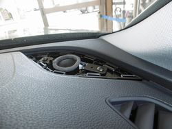 アウディ用のソニックプラスは専用のアルミバッフルや、音の指向性などを良くするアコースティックコントロールエレメントを使用し、しっかりと取付けいたします。