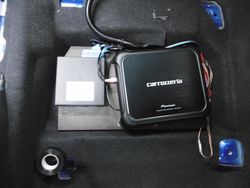サブウーファーを駆動させる為にカロッツェリアのパワーアンプを助手席シート下に取付いたしました。