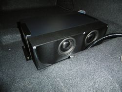 フロントスピーカーは大型エンクロージュアで低域特性がいいのですが、超低音の再生とパワー感を出す為にサブウーファーを取付いたしました。