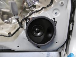 トゥイーターはAピラーに加工取付し、ドアスピーカーは純正のままでは口径が小さく取付け出来ませんので、鉄板をカットして取付けいたします。