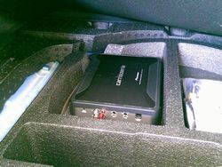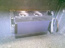 サブウーファーはリアシート後ろ側に取付し、サブウーファー駆動用アンプはトランク内に収納いたしました。