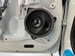 ドアスピーカー取付口径が小さいので、鉄板加工をさせて頂きエンクロージュアスピーカーを取り付けいたしました。