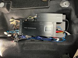 運転席シート下にはソニックデザインのサブウーファーTBE-SW77iを取付いたしました。