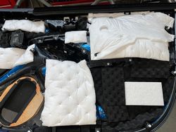 ダッシュ上の純正スピーカー位置には19mmトゥイーターと、30プリウス用のクレストを取付いたしました。30クレストは52mmワイドレンジドライバーが一体鋳造アルミダイキャストに入ったユニットで中高域を再生いたします。今回は超高域をトゥイーターで再生するフロント3ウェイになっています。音の抜けを考慮しグリルを新たに製作致しました。
