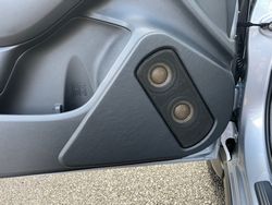 このドアスピーカーは77mmスピーカー2発が一体鋳造アルミダイキャストエンクロージュアに入ったスピーカーです。ドアスピーカーでは想像できないクリアでパワフルな低音再生をいたします。そのかわり超ド級のウーファーユニットのため取付けには加工をさせて頂き取付いたしました。