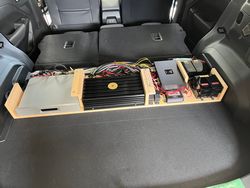 クロストレックのストロングハイブリッドはトランクにバッテリーがある為、オーディオユニットを必要最小限のスペースで取り付けいたしました。