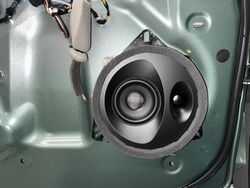リアスピーカーにはフルレンジスピーカーのTBE-77Kiを使用いたしました。こちらも加工が必要ですが、最小限に抑えて取付できました。