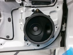 交通タイムス社発行の「スバルマガジン」の企画で「ソニックデザインのスピーカーが旧モデルでも取り付けできる」ということで、当店にてレガシィにソニックデザインのスピーカーを取り付けさせて頂きました。スバル車はスピーカーの取り付け口径部が小さい為、鉄板をカットし取り付けいたします。内装側は加工しないので見た目のドアデザインを損なうこともなく、またノーマルスピーカーに戻すことも可能です。トゥイーターはオリジナルでマウントを製作して取り付けいたしました。サイバーナビをお使いでしたので、サウンド調整して納車いたしましたが、純正からのサウンドの違いと、外への音漏れの少なさにご満足頂きました。鉄板カットと配線加工はありますが、見た目のデザインなどを損なう事なくソニックデザインのサウンドが楽しめます。「スバルマガジンVol.6」掲載。