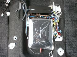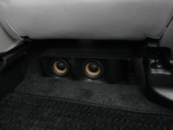 プリウスPHVにオーディオシステムを取り付けいたしました。純正ナビが交換できませんので、パワーアンプを使い音質向上いたしました。フロントのトゥイーターとドアスピーカーは、オリジナルでバッフルを製作して取り付けいたしました。リアスピーカーも必要ということでソニックプラスを取り付けいたしました。サブウーファーとアンプはシート下にしっかり固定し取り付けいたしました。純正ナビとは思えない力強く、しっかりとワイドレンジに再生している音質には、お客さまご満足頂きました。