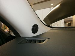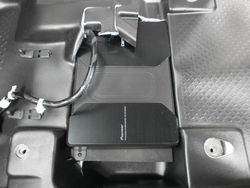 ソニックデザインのスピーカーを気に入っていただいたのですが、エクストレイル専用のスピーカーはありませんので、カジュアルラインTBE-1877を取り付けいたしました。ニッサンはスピーカー取り付け口径が小さいので、ボックススピーカーが入る大きさに加工をさせて頂きました。内装のパネルは加工を致しませんので、見た目のデザインを損なうことはありませんし、純正のスピーカーに戻すことも可能です。純正でトゥイーターがありませんので、Aピラーにトゥイーターを取り付けいたしました。サブウーファーは助手席シート下の段差にちょうど収まることが出来ましたので、エアコンの噴出し口を塞がずに取り付け出来ました。ウーファー用のベースを固定してありますので、しっかりとウーファーを取り付けできました。デッキは純正ですが、バス・トレブルなどのサウンド調整をして納車いたしました。トゥイーターが付いたことで、定位はダッシュ上に上がり純正ではこもっていた音質がクリアで鮮明に再生されるように鳴りました。お客様も音質の違いにご満足頂きました。