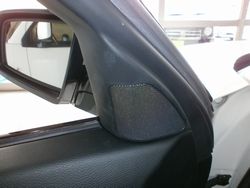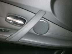 純正スピーカーのこもった音の音質改善をご相談頂き、店頭にて音質確認をさせていただきハイグレードモデルを取付致しました。BMW E60系のスピーカーは内装側に取付されていますが、専用のアルミバッフルを使いしっかりと固定いたします。スピーカーの取り付けには加工もなくトゥイーターも純正位置に収まります。このお車は純正でセンタースピーカーが付いていましたので、専用のアッテネーターを取り付けしてフロントスピーカーに合わせてバランスを整えます。純正のリアスピーカーとシート下のウーファーはそのまま鳴らし、デッキのサウンド調整でバランス・イコライザーをしっかり調整して納車いたしました。お客様のご要望だったこもった音はクリアになり、高域もしっかりと伸び気持ちよく聴こえるようになり、お客様もご満足頂きました。