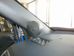 いつもお世話になっているS4です。今回は純正のビルトインナビからケンウッドの最速ナビに交換をさせて頂きました。一緒にステアリングリモコンをB型の物と交換し、ステアリングでナビの縮小などもできるようにいたしました。またお車を預かるときにUNIT-N52MAを試聴し、製品のクオリティなどを気に入って頂き購入頂きました。UNIT-N52MAをAピラーに取り付けすることで、音楽の主要帯域をクルマ特有の車内特性の影響を受ける事無く聴けるので、クリアで解像度の高い音を直接聴く事ができます。すでにプロセッサーをお使いでしたので、細かな調整が出来き、目の前にリアルなステージングを作ることができました。お客様も今までとはまた違った音質になり、「今まで以上に音がしっかりと聴ける!」など、取付したことを大変喜んで頂きました。