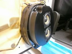 いつもお世話になっているスーパーワゴンRです。今回はリアスピーカーに30プリウス用のTheCRESTを取り付けさせて頂きました。こちらも超ど級のスピーカーで、今回の狙いはフロントスピーカーのクロスポイントを上げ、リアスピーカーで低域を補い、サブウーファーで超低域を再生いたしました。フロントスピーカーの負担を減らすことでより解像度が上がりました。お客様も予定通り中高域が良くなり、低域もしっかりとクリアで超低域まで再生される音質に、お客様も大変ご満足頂きました。また今回は当店のロゴが刺繍されたフロアマットを製作させて頂きました。
