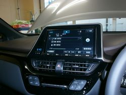 東京都よりお越し頂きましたC-HRです。納車前からプランニングさせて頂きシステムで取り付けさせて頂きました。納車されたばかりですが、ローダウンやホイール・エクステリア・インテリアパーツが付いていらっしゃいました。今回は純正ナビを使いワンランク上の音質にいたしました。純正ナビは調整機能などが少ないので、今回はヘリックスのプロセッサーアンプを使い、すべてのスピーカーをコントロールいたします。フロントスピーカーはハイグレードモデルを取り付けし、リアスピーカーはスタンダードモデルを取付しましたが、C-HR専用のモデルではなく、プリウスなどで使うSP-P30REを取り付けしました。C-HRは純正のドアのクリアランスがないので、通常は薄型のスピーカーを付けるのですが、ちょっとした工夫でフロント同様の厚いタイプのボックスが取り付け出来ます。ボックス容量が多い方が低域再生に優れ余裕のある音を奏でることができます。もちろん内装のデザインは変わりませんしノーマルにも戻せます。サブウーファーは運転席シート下に取り付けしました。プロセッサーアンプは助手席シート下です。プロセッサーを使って各スピーカーの調整を細かく出来るので、目の前に展開するステージングとクリアでワイドレンジに再生する音質になりました。お客様もクリアで細かい音まで繊細に再生する音質や、しっかり調整した目の前に展開するステージングに大変ご満足頂きました。調整機能の少なく、音質も○○なナビでもプロセッサーアンプの追加でもっとソニックプラスは良くなりますよ!