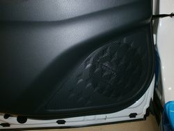 一度音質を試聴いただき、納車と同時に前後スピーカーを交換させて頂きました。車種専用スピーカーですので、加工などは一切致しませんので、見た目の内装のデザインを損なうことはありません。ブルーレイが再生できるパナのナビをお使いでしたので、サウンド調整をして納車いたしました。純正の音質は低域がモワモワしているお陰で全体にクリア感がなく、音の分離感がありませんでしたが、スピーカーを交換したことで、低音はクリアでタイトに鳴り、情報量も上がったので一つ一つの音がしっかりと分離し楽器などが明確になりました。クリアで聴きやすくなった音質にお客様も大満足頂きました。また車外への音漏れも軽減され、こちらも喜んで頂きました。