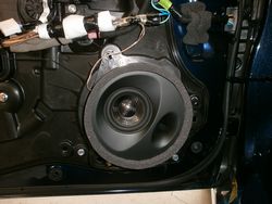 他社製品のスピーカーをお使いで音楽を楽しんでいましたが、音質にご満足できなくソニックデザインのスピーカーに交換させて頂きました。マツダ車用のソニックプラスは設定がありませんので、汎用モデルのカジュアルラインを多少加工して取り付けいたしました。スピーカー取り付けには鉄板加工が必要ですが、内装側は加工しませんので見た目のデザインは変わりません。マツダのナビは調整機能がありませんので、バス・トレブルでバランス調整をして納車いたしました。クリアで締まりのある音質と情報量も細かく聴こえるようになり、お客様も「交換してよかった」と音質にご満足頂きました。また外への音漏れもひどかったのが、こちらも軽減され喜んでいただきました。