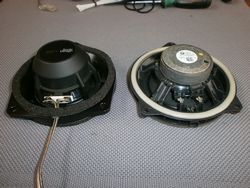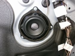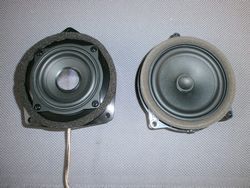 埼玉県よりおこしいただきましたBMWです。純正でトゥイーターがありませんので、高域の伸びが無く全体にこもった感じに聴こえる音質にご満足いただけなく、今回ソニックプラスの取付をさせて頂きました。今回取付したソニックプラスは2ウェイスピーカーですので、事前に純正のトゥイーターカバーをご用意し取付け致しました。純正スピーカーはプラスチックのフレームですが、ソニックプラスはアルミフレームでしっかりと出来ています。さらに取り付けバッフルもアルミ製でしっかりと固定が出来き、しっかりした音質を奏でます。見た目の内装は純正のままですが、音質は高域がしっかり伸び、クリアできめ細かな音質を奏でるようになりました。お客様も奥行きもでたとご満足頂きました。BMWはトゥイーターがない車両が多いので、ソニックプラスを取り付けることで音質が激変しますよ。