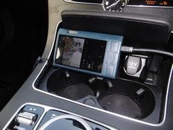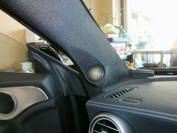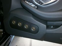 いつもお世話になっていますCクーペです。デジタルプロセッサー・デジコア808iを核に最高級の音質を求めたお車です。スピーカーにはメルセデスベンツのCL用に設計されたPREFIXを取付してあります。フロントは52mmのスピーカーが片側4本入った一体鋳造エンクロージュアに入ったUNIT-PX216Fをアウターバッフルを製作して取り付けしてあります。52mmとは思えない音を奏でます。本来は必要ありませんが、お客様のご要望でAピラーにトィーターを取付して、定位感を出しています。低域の補強にA4サイズのボックスで77mmスピーカーとは思えないクリアな低域を再生するB80Nを、グローブボックス下側に取り付けいたしました。さらに20Hzまでクリアでしっかり再生するPREFIX UNIT-PX216Wをトランクに取り付けしてあります。これもCL用に設計され、77mmが4本完全一体鋳造バスレスエンクロージュアに入っているスピーカーです。その他にも音質向上の為に電源関係やケーブルなども強化しています。またハイレゾ音源も高音質で聴けるようにオーディオテクニカのHRD500やオーディオ以外に助手席サイドが見れるようにサイドカメラなども取付してあります。音質は流石に素晴らしく言うことがありません。お客様もこの音質にはご満足頂いています。