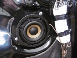 東京都よりお越し頂きましたBMWです。電話で問い合わせを頂き製品説明などをさせて頂きました。今回はトップグレードモデルをフロントに取付けさせて頂きました。BMWは純正トゥイーターが無いお車があり、高域は伸びずクリア感がありません。その為大体のお客様のお車を預かり調整画面を見ると高域(トレブル)は上げてあります。これはトゥイーターが無いので高音を出すのとクリア感を出そうとしているからです。しかし純正のスピーカーは高域を上げても、もともと高域が出ないので高中域が出るだけです。結果調整機能で低域(バス)も上げるようになり、バランスの悪い音になります。今回はアラミド繊維のトップグレードを取付したので、レスポンスが良く解像度が飛躍的に上がりました。また純正のトゥイーターカバーをご用意してトゥイーターも追加いたしました。見た目のデザインは純正ですが、音質は別格になりました。純正と違い音楽がクリアで聴きやすくなり、小さい音量でもはっきりと聴こえるようになりました。お客様も交換後の音質にはご満足頂きました。