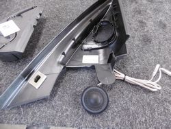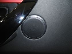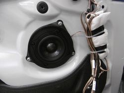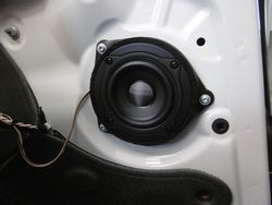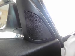 純正の音質にご不満で、音質の改善をさせて頂きました。フロントスピーカーは新型になったスピーカーSP-F30iM(ハイグレード)を取付いたしました。純正でトゥイーターが付いていませんので、トゥイーターのカバーを購入頂き取付けいたします。新型のトゥイーターはアルミのリングを使いしっかりとトゥイーターが固定されます。ドアウーファーは従来のアルミバッフルと違い、ダイキャスト製でしっかりとスピーカーを固定いたします。このバッフルになっただけで、音の締りが一段と良くなりました。前後のバランスを考慮しリアスピーカーも交換いたしました。リアスピーカーはスタンダードモデルのSP-F30iREを取り付けいたしました。最後に純正デッキでバランス調整をして納車いたしました。高域の伸びがあり、全体にクリアで締まりのある音になりました。お客様も音の違いがはっきりして、交換して良かったと喜んで頂きました。純正のデザインを損なわずに音質を良く出来るスピーカーです。