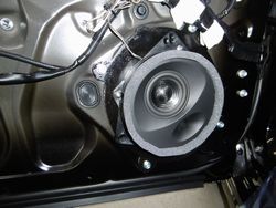 お客様のご要望でソニックデザインのエンクロージュアスピーカーを取付いたしました。新型カムリには車種専用のソニックプラスがありませんので、今回アクア用のソニックプラスを流用して取付いたしました。新型カムリもプリウス同様でドア内部に内圧センサーがあるので簡単にスピーカー交換が出来ませんが、ソニックデザインのスピーカーなら問題なく取付可能です。純正がオーバルタイプのスピーカーのため専用のバッフルを製作して取付いたしました。トゥイーターも専用のマウントを製作して取り付けいたしました。ケンウッドのナビゲーションをお使いでしたので、サウンド調整をして納車いたしました。音のクリア差や情報量の多さなど、純正とは違いお客様もご満足頂きました。