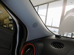 キャストスポーツにエンクロージュアスピーカーを取り付けしました。純正の車外への音漏れがひどいのと、純正のこもった音を改善する為にソニックデザインのご指名をいただきました。車外への音漏れはいくらデッドニングをしても改善できません。エンクロージュアスピーカーは後ろ側がボックスになっているので、車外への音漏れが改善できます。特に軽自動車は鉄板も薄いので音漏れがしてしまいます。今回キャスト用のソニックプラスはありませんので、汎用モデルのTBE-1877Aiを取付いたしました。スピーカー取り付け面の開口が小さいので、鉄板加工をして取付いたしました。トゥイーターは純正で付いていませんでしたので、純正位置に加工をして取付いたしました。最後に純正パナソニックナビのサウンド調整機能を使い、音調整をして納車いたしました。純正のこもっていた音はクリアになり、高域の伸びがあり解像度は格段に上がりました。音の定位もダッシュ上に上がり気持ちよく聴けるようになりました。またお客さまが気になっていた音漏れは軽減されご満足頂きました。