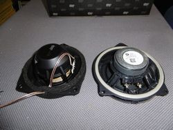 神奈川県よりお越し頂きましたグランクーペです。今回はお客様も音質を気に入って頂きましたトップグレードモデルを前後に取り付けさせて頂きました。純正はプラスチック製のフレームで軽量、コーンは紙質ですが、ソニックプラスはダイキャントのバッフルでしっかり固定され解像度の高いアラミド素材のコーンにネオジウムマグネットとなっております、トップグレードのアラミド繊維は解像度が高くレスポンスのいいスピーカーです。純正でトゥイーターがありませんでしてたので、トゥイーターカバーをご用意してトゥイーターを取付いたしました。そのためスピーカーを変えても純正のデザインを崩すことがありません。純正デッキでバランス調整をして納車いたしました。お客様の一言目は「ラジオみたいな音じゃなくなった」と言われ、音のクリアさ、音の細かさなどに喜んで頂きました。BMWは純正でトゥイーターのないお車も多く、スピーカー交換をすることで各段に音質がよくなるのでお勧めです。