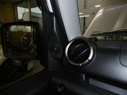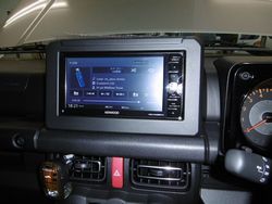 新型ジムニーにナビやバックカメラ・スピーカーなどを取付させて頂きました。お客様からエンクロージュアスピーカーは取り付け出来ませんかとご相談いただきました。純正のスピーカーが小さい為、鉄板の加工は必要になりますが取付は可能です。もちろんドアトリムを戻せは見た目のデザインはノーマルのままです。トゥイーターはミラー裏のカバーに埋め込み加工いたしました。また運転席シート下にサブウーファーTS-WH500Aを取付し低域を鳴らします。今回取付したケンウッドのナビはサウンド調整もできますので、音調整をして納車いたしました。音楽が目の前に広がり、低域から高域までワイドレンジに再生され、お客様も「気持ちいいね!」と喜んで頂きました。