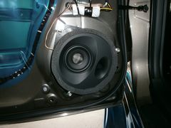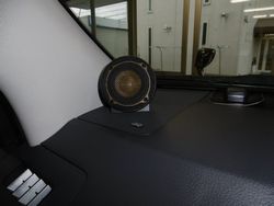 いつもお世話になっていますプラド。十分音楽を楽しんでいただいていましたが、今回システムアップをさせて頂きました。今回は前々からきになっていたワイドレンジドライバーをご購入頂きました。ワイドレンジドライバーは52mmの小型スピーカーで音楽の主要帯域をこのスピーカーで再生できるので、ダッシュボードなどに設置することで音響的に優れ、クリアで解像度の高い音質を奏でることが可能です。今回は限定で発売されたUNIT-N52GAを選択いただき、より表現力豊かな音を再生いたします。MATCHのプロセッサーをお使いでしたので、各スピーカーが細かく調整でき、今まで以上に音楽を忠実に再生しています。トゥイーターでは再生できない音を体験でき、お客様もステージングの広さ・高さやヴォーカルの聴こえ方などが変わり大変喜んで頂きました。
