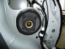 今回取り付けさせて頂きましたスピーカーは前後CHR用のリミテッドモデルを取付いたしました。リミテッドモデルはフルアルミダイキャスト製のエンクロージュアを使用しているため、音のクリア感・解像度が全然違います。ホンダ車はスピーカーの取付け口径が小さい為に、鉄板を一回り大きくして取付しています。トゥイーターも純正位置に取付いたしました。リアスピーカーはバッフルを製作し取り付け致しました。Cピラーのトゥイーターは後部座席の耳の位置なのでレヘルを落とす為にアッテネーターを使いました。助手席シート下にはサブウーファーを取付し、サブウーファーを鳴らすアンプは運転席下に取付いたしました。アルパインのナビをお使いでしたので、サウンド調整をして納車いたしました。流石はリミテッドモデルです。音の密度が高く解像度の高い音を奏で、クリアで音質の高さは抜群です。すっと音が出てくる感じでお客様もご満足頂きました。また車外への音漏れもほとんどなく、こちらも喜んで頂きました。