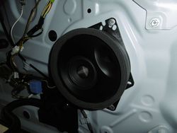20系のソニックプラスはそのままでは取付できないので、ネジ穴などを変更して取付いたしました。トゥイーターは加工無く取付けしてあります。