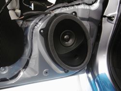 納車前よりご相談頂きグレードなどの音の違いなどを確認頂きました。音の違いなどで今回はフロントにハイグレードモデル・リアにスタンダードモデルを取り付けいたしました。新型レヴォーグはオーバルタイプのエンクロージュアになり一段とハイクオリティの高い音になっています。前後のスピーカーを交換することでバランスや広がり感が良くなります。また車外への音漏れも軽減いたします。新型のレヴォーグは圧倒的にこの大型モニターが多くなると思いますが、残念のことに調整機能がほとんどありませんが、最適なバランス調整をして納車いたしました。音の締りが良くなり、低音もモワっとしていたのがなくなりました。もちろん解像度は高く細かい音がしっかりと聞こえるように鳴りました。お客様も「薄っぺらい音が厚みのある音になり、全然違う」と喜んで頂きました。