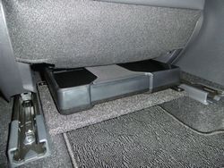 助手席シート下にはカロッツェリアのサブウーファーTS-WH500Aを取付いたしました。取り付けベースを製作ししっかりと固定いたします。またエアコンの噴出し口も塞ぐ事なく取付け可能です。