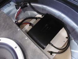 サブウーファーの駆動用アンプにはHELIXのアンプをトランク下に取付けしました。