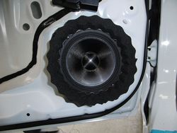 当店のおすすめスピーカープランから、お客さまご希望のパイオニアのスピーカーを前後に取付いたしました。バッフルにはメタルインナーバッフルを使用ししっかりとスピーカーを固定いたします。トゥイーターはドア純正位置ではなくAピラーに固定いたしました。サイバーナビをお使いでしたのでサウンド調整をして納車いたしました。全体のバランスが良く、純正と違い音の締りがよくなりお客様も音の変化にご満足頂きました。